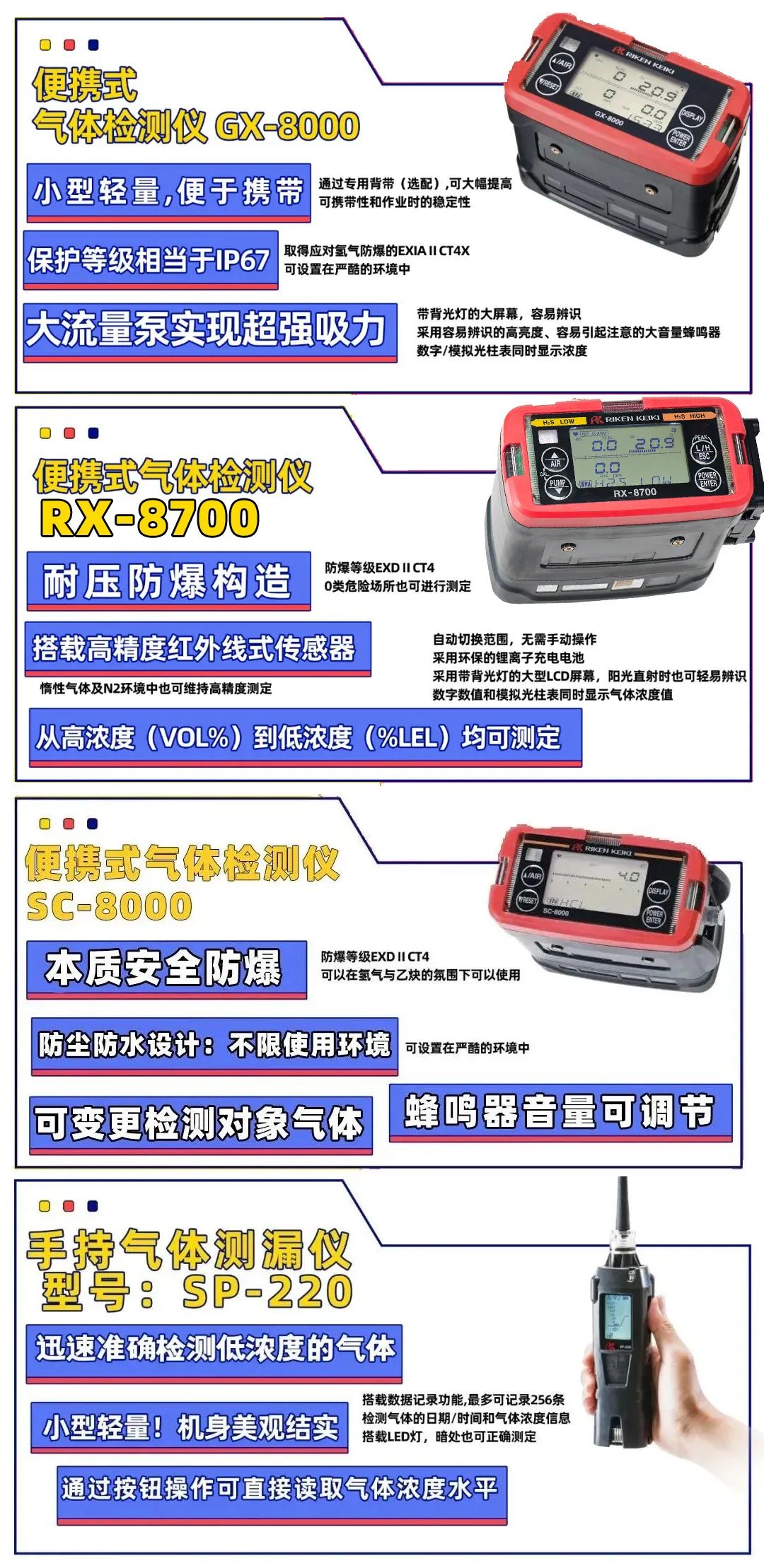理研計(jì)器便攜式氣體檢測(cè)儀GX-8000、RX-8700、SC-8000、SP-220、GX-6000適合各類(lèi)場(chǎng)景作業(yè)用,不會(huì)影響作業(yè)過(guò)程,實(shí)時(shí)檢測(cè)到環(huán)境內(nèi)的氣體含量變化。