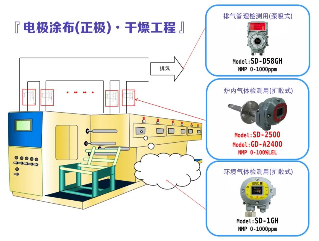 所以在電池正極涂布過程中,需要在線監(jiān)測NMP的濃度以確保安全生產(chǎn)。面對著高溫高壓的干燥爐內(nèi)環(huán)境,理研計器早已于1988年就開發(fā)出了世界首款可在高溫環(huán)境下檢測NMP可燃性氣體的檢測儀--SD-2500↓↓↓