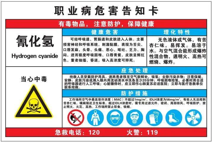 氰化物顆粒、粉末及含量溶液,遇酸或受潮會(huì)分解產(chǎn)生更易致人中毒的氰化氫氣體。 若含氰鍍槽的布置、含氰廢水的排放和通風(fēng)管路待存在缺陷,可能會(huì)產(chǎn)生氰化氫。
