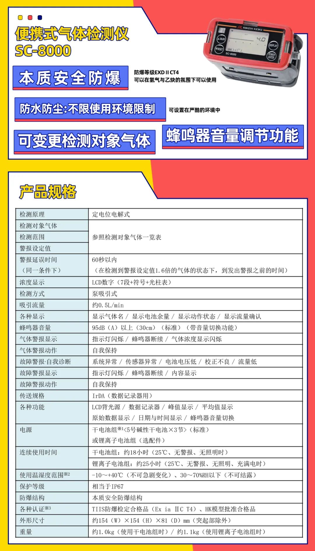 型號SC-8000自帶內(nèi)置采樣泵,采樣速度快,流量大,獨特的設(shè)計,外形小巧易攜帶,外殼采用高強(qiáng)度特殊材料,可以滿足于各種環(huán)境和場合的作業(yè)。